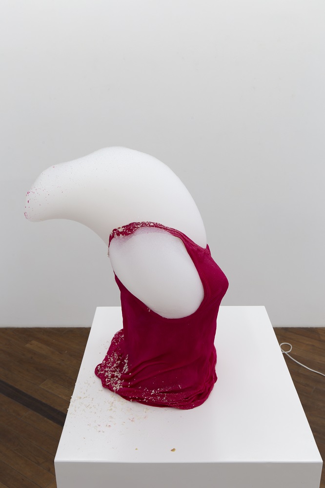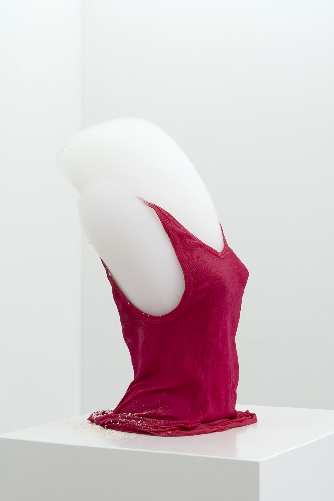 An permanent ongoing indoor Foam Action which is implemented inside a specially prepared pink shirt, placed on a pedestal.